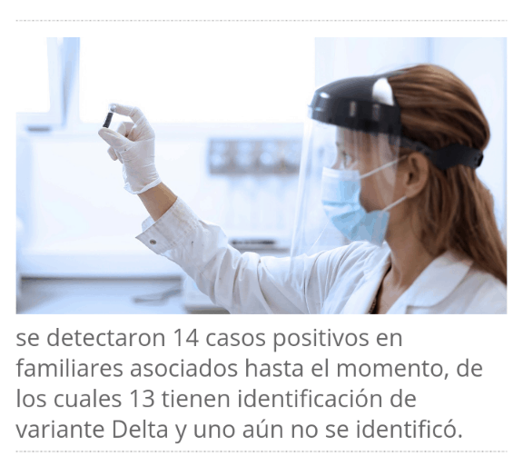 A partir de ello se detectaron 13 casos positivos en familiares asociados hasta el momento, de los cuales 12 tienen identificación de variante Delta y uno aún no se identificó.
