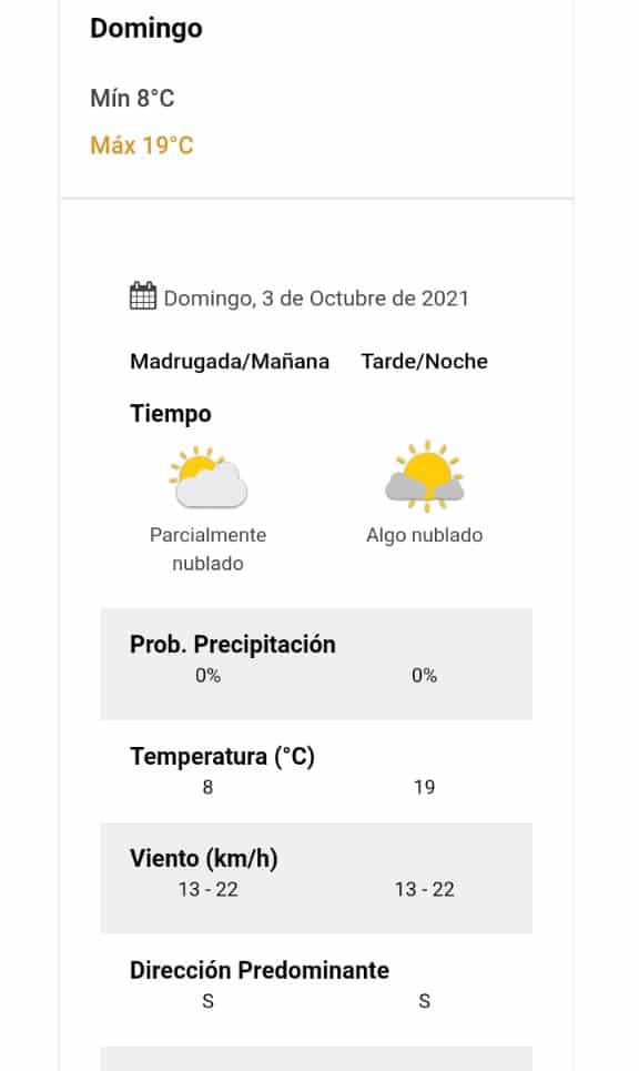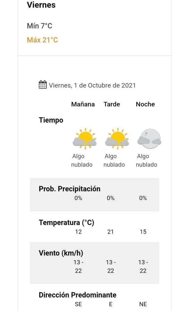 Mientras tanto, viernes y domingo se anuncian con buenas temperaturas y cielo algo nublado.