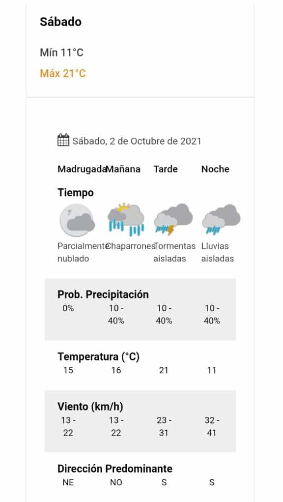 El Servicio Meteorologico Nacional informa para este fin de semana, temperaturas moderadas y un sábado con tormentas y bastante agua.