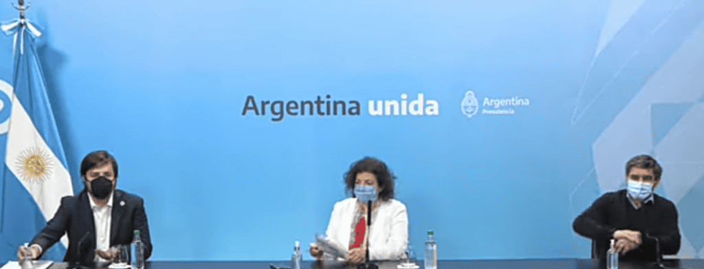 Desde Casa Rosada, la ministra de Salud, Carla Vizzotti, habla en conferencia de prensa acerca del esquema de vacunación para aquellos que esperan la segunda dosis, acompañada por Nicolás Kreplak, ministro de Salud de la provincia de Buenos Aires, y Fernán Quirós, titular de la cartera sanitaria de CABA.
