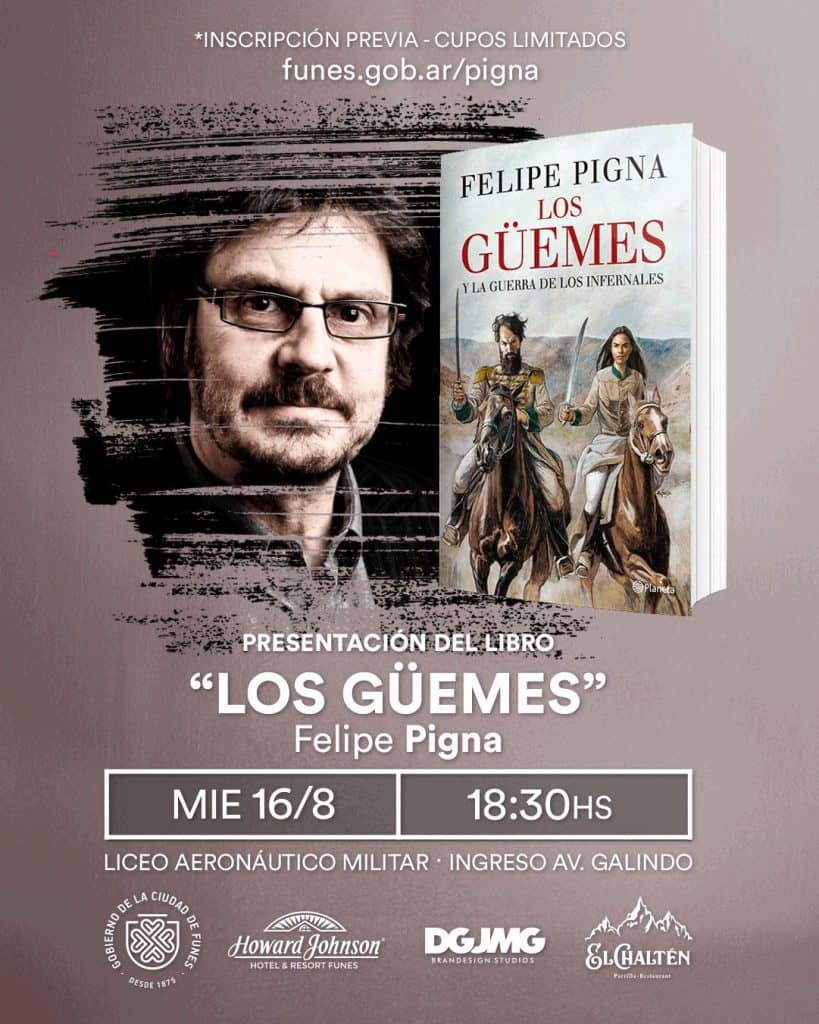 También presentará su libro emblema “Los Güemes, la guerra de los infernales”, una biografía sobre Martín Miguel de Güemes, prócer argentino que fue un actor clave en la defensa de la frontera norte del país ante el avance español y una figura central en la Guerra de la Independencia.