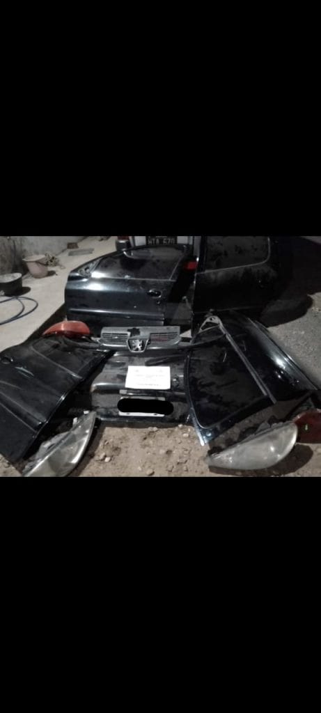 Una vez que se controló la situación personal policial observa que en la parte trasera de la camioneta se encontraban autopartes de un Peugeot 206, verificados los guarismos de las autopartes, sistema del 911 informa que las autopartes presentan una captura activa con fecha 28/04/2021 por robo de automotor en calle Pasaje de la Costa al 800 de la ciudad de Rosario.