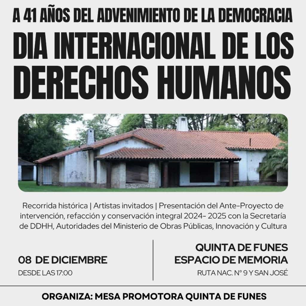 Se presentará el ante proyecto de puesta en condiciones del espacio y habrá artistas invitado, todo con la presencia de autoridades locales y provinciales así como miembros de la Comisión por la Memoria de Funes y organismos de DDHH de la región.