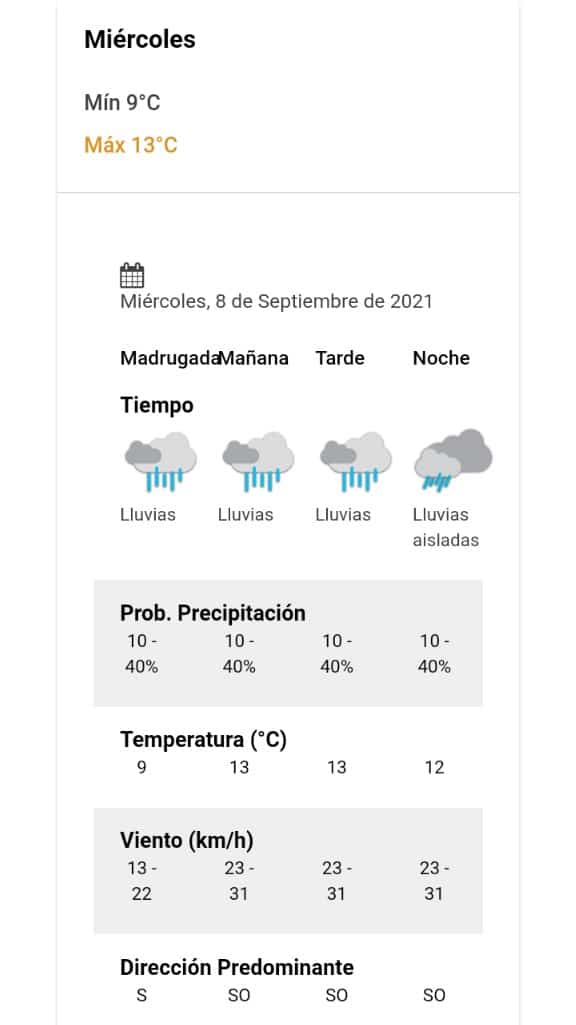 Con temperaturas de entre los 9 y los 15 grados, con una humedad superior al 90% y un cielo cubierto con algunas lloviznas y chubascos, asi serán los días hasta el próximo jueves al mediodía.