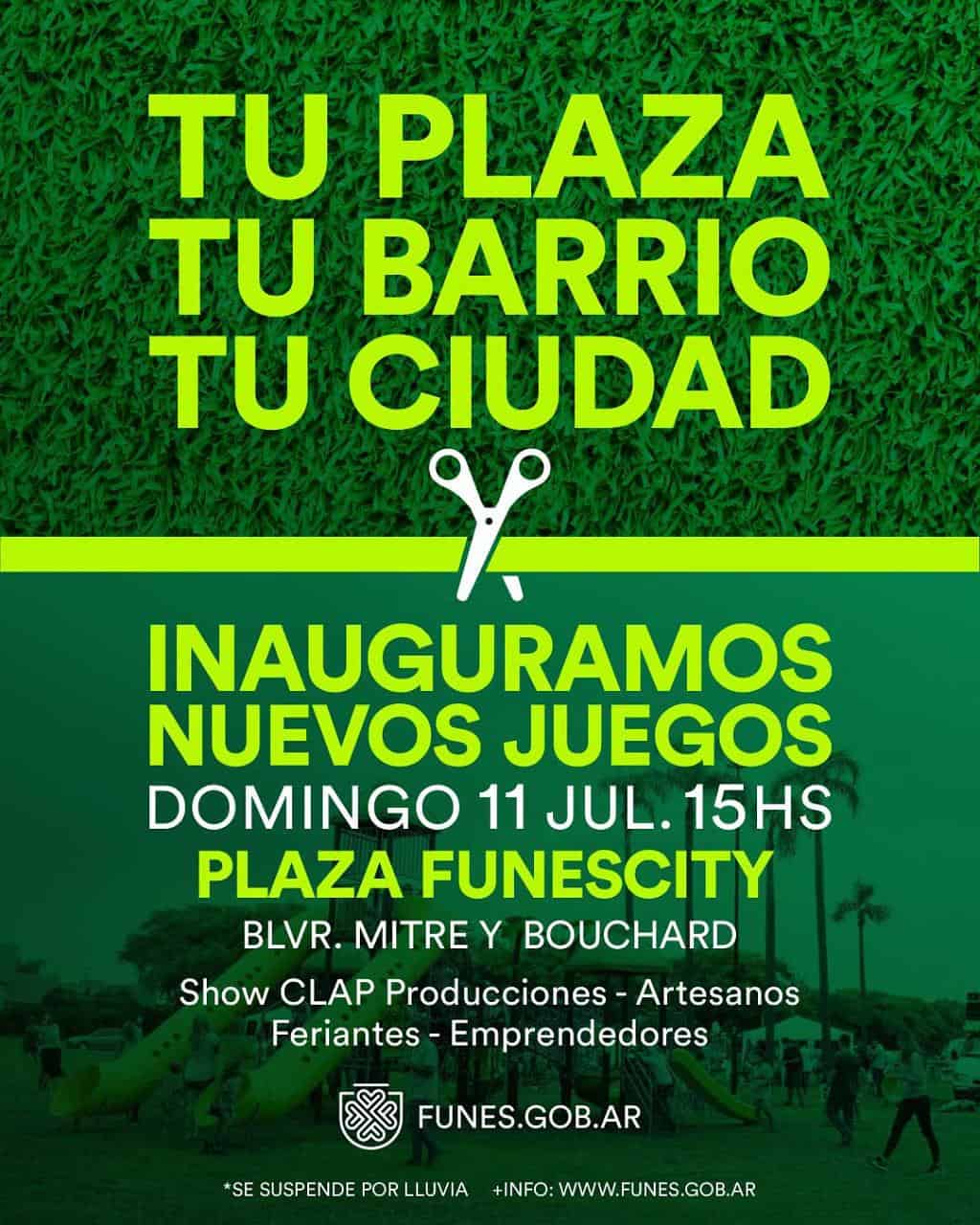 El próximo domingo desde las 15 horas la Gestión de Roly inaugura plaza Funes City un viejo reclamo de los vecinos de ese espacio de la ciudad.