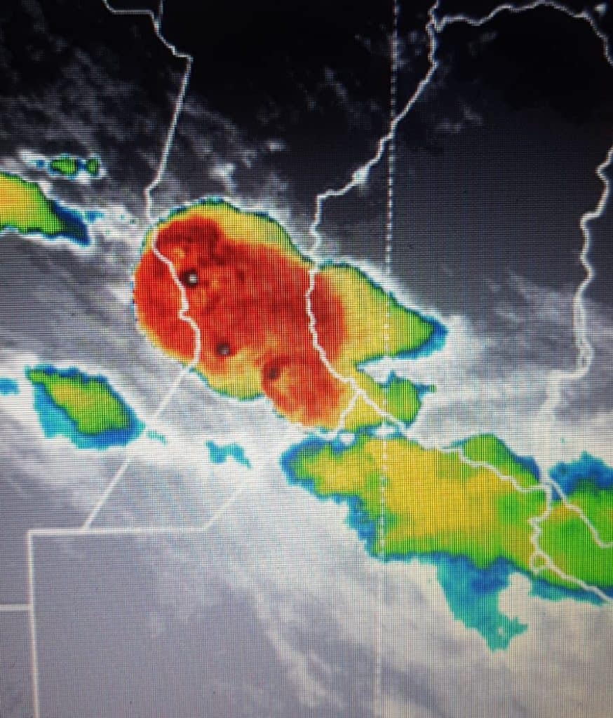 Si bien el sol se abrió camino entre las nubes de a ratos y el día estaba muy caluroso, por la tarde el cielo volvió a cubrirse con un trueno constante como cortina que amenazaba con una nueva tormenta. Al rato llegó una lluvia intensa, con viento y actividad eléctrica.