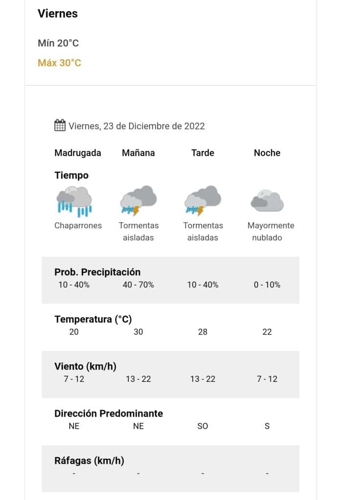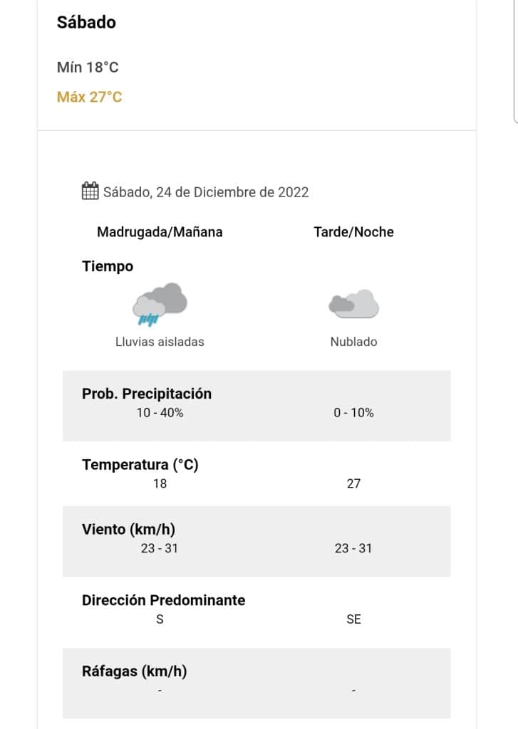 El clima para este fin de semana anuncia una mejora en las temperaturas, lluvias para mañana viernes y parte del sabado 24 que tendra una maxima de 27 grados ideales para una cena sin sofocones. El domingo 25 tiene un pronostico de cielo algo o parcialmente nublado y una temperatura de no mas de 24 grados.